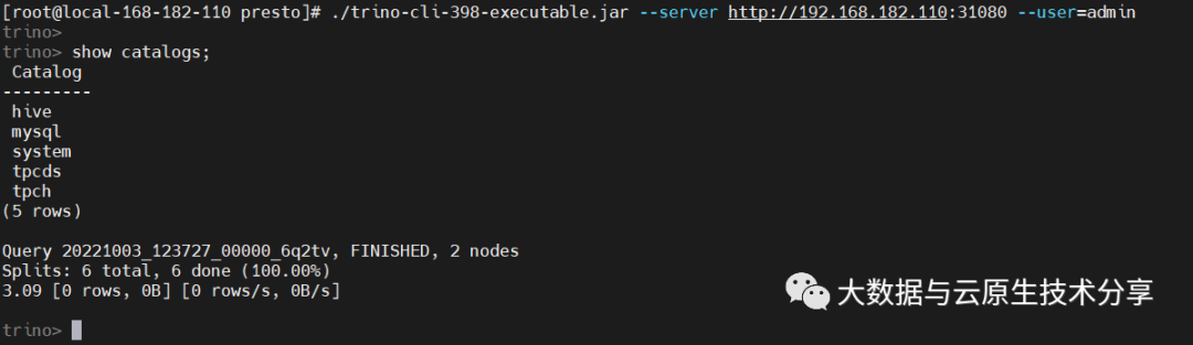 ./trino-cli-398-executable.jar --server http://192.168.182.110:31080 --user=admin