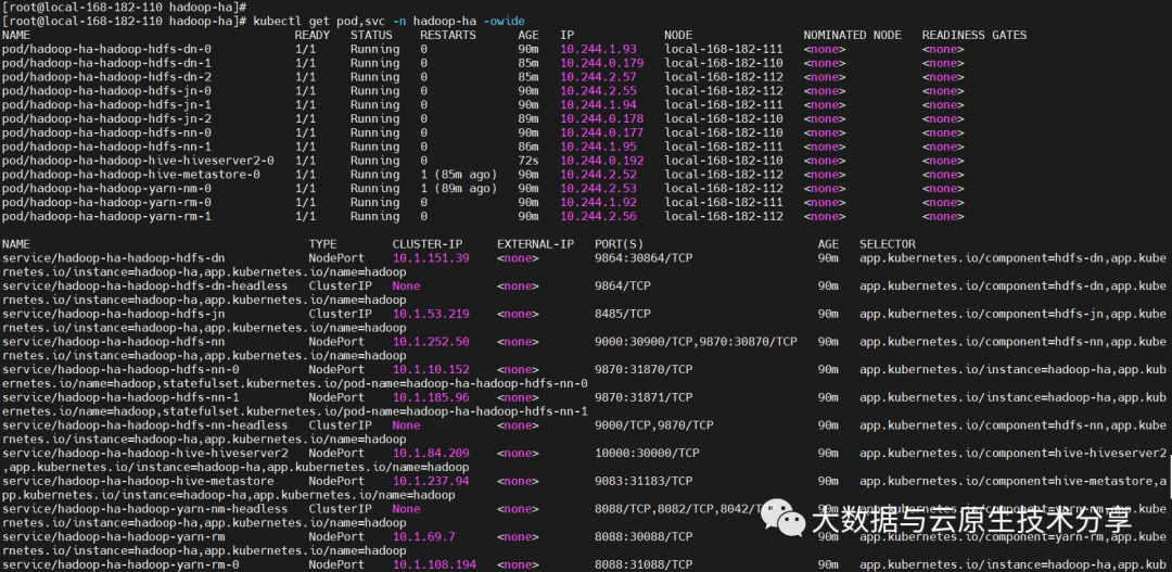 kubectl get pods,svc -n hadoop-ha -owide