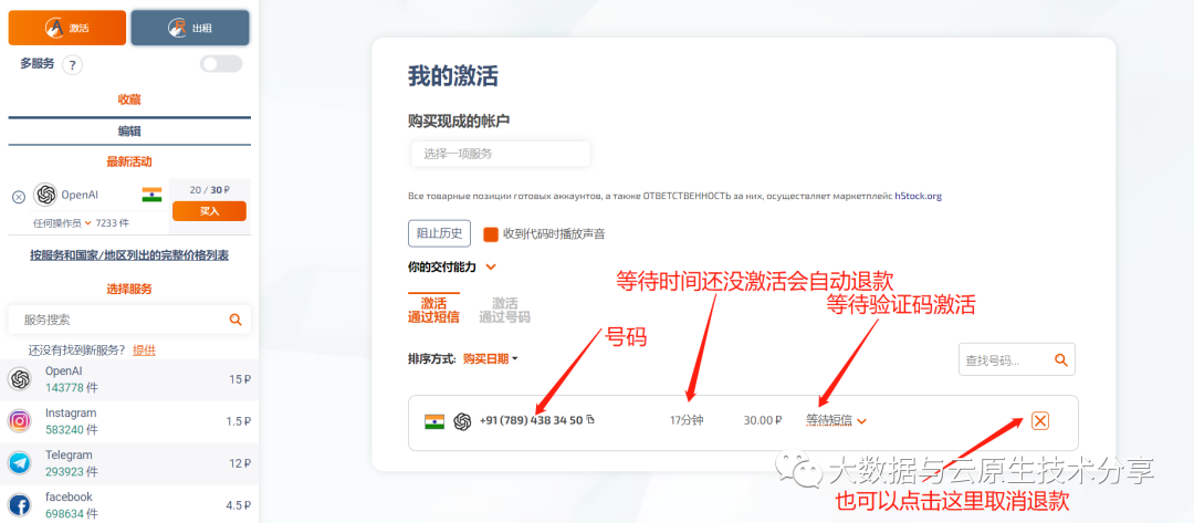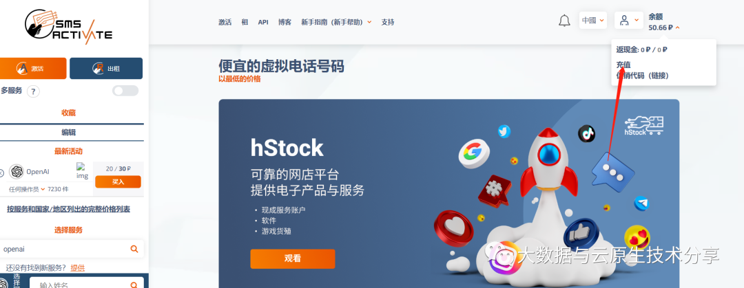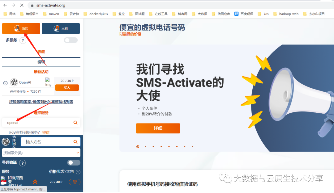 这一步需要用到接码平台完成手机号验证,推荐平台链接地址:https://sms-activate.org/