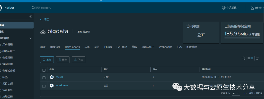 helm cm-push wordpress-15.1.5.tgz local-harbor --ca-file opt/k8s/helm/ca.crt