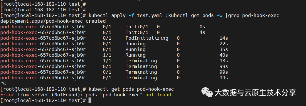 kubectl apply -f test.yaml ;kubectl get pods -w |grep pod-hook-exec