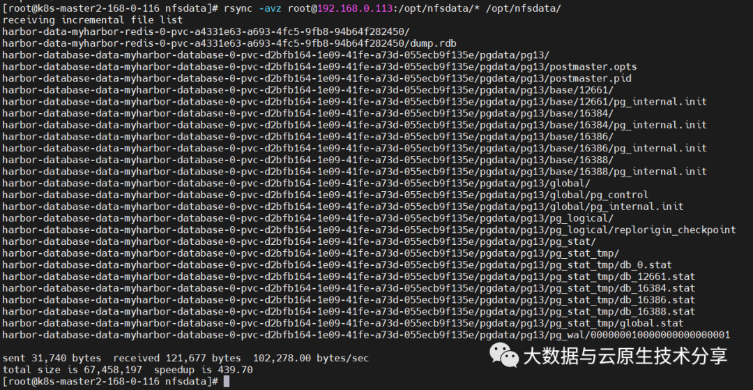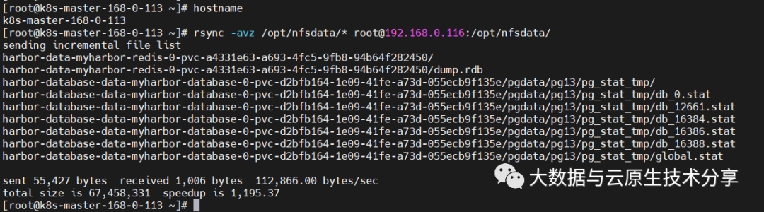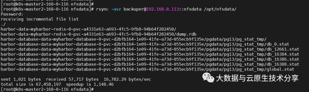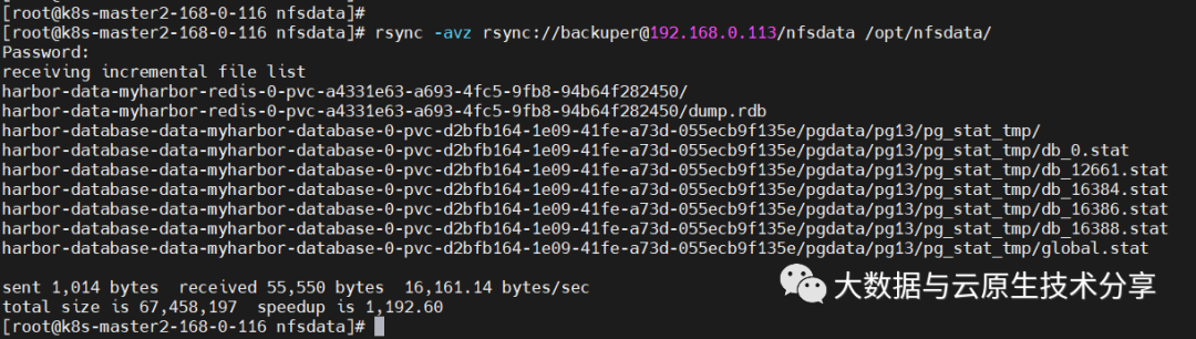 rsync -avz root@192.168.0.113:/opt/nfsdata/* opt/nfsdata/