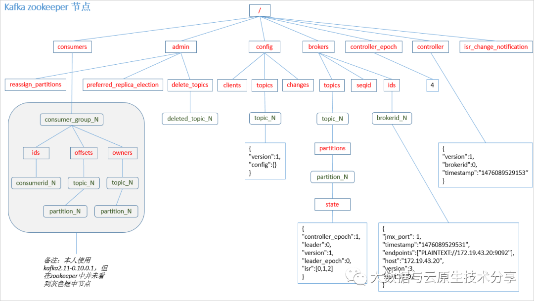 kafka 在 zookeeper 中的存储结构如下图所示:
