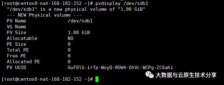 PE Size 4.00 MiB 可以看到vg的PE大小为4M,默认大小