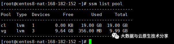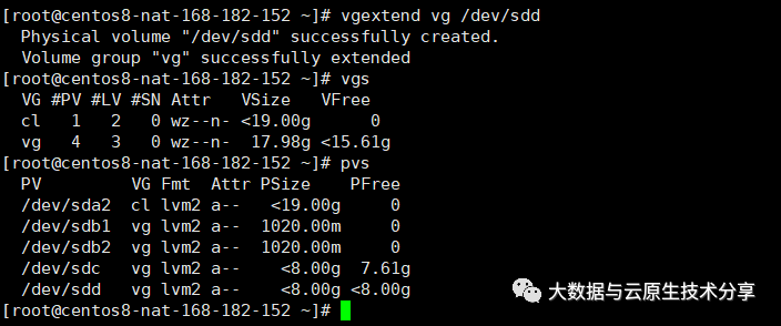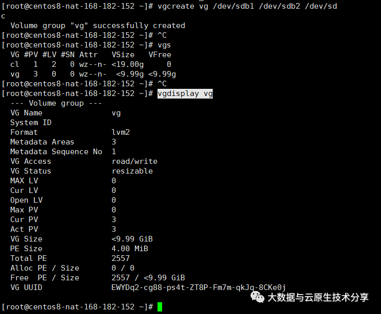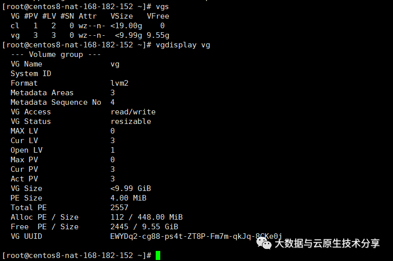 [root@centos8-nat-168-182-152 ~]# vgdisplay vg