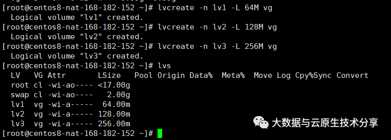 $ lvcreate -l 100%FREE -n lv2 vg #注意这里是小写的l