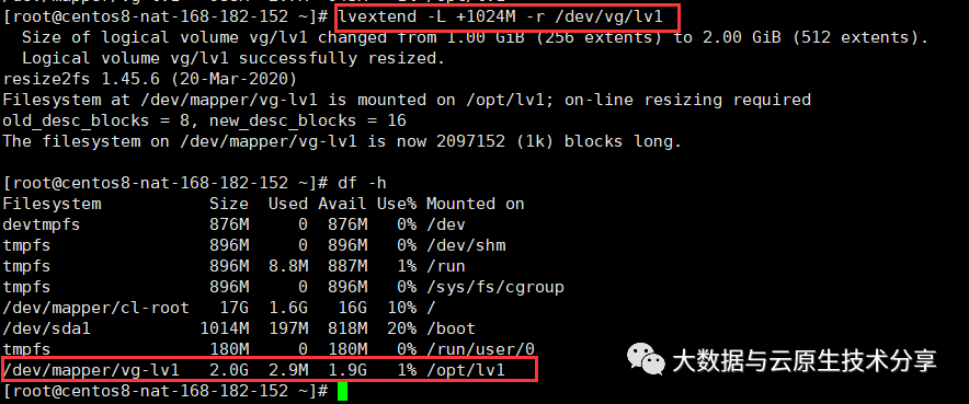 当然来到CentOS7后,我们还可以使用lvextend命令的-r选项来使文件系统自动扩容,实例如下: