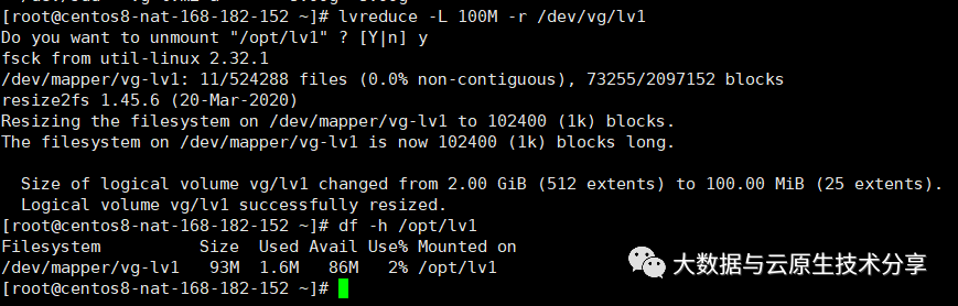 使用lvreduce的-r选项尝试减小空间,缩容失败