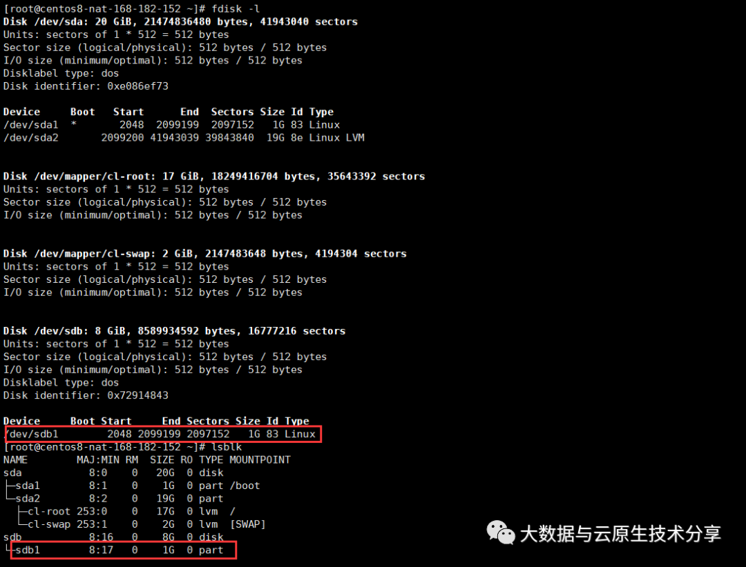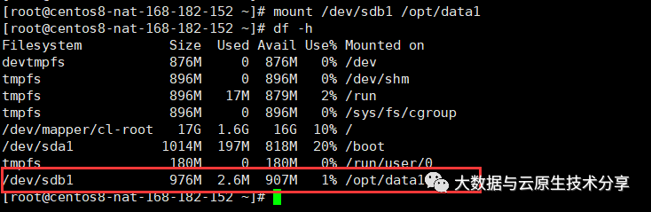 [root@centos8-nat-168-182-152 ~]# mkfs.ext4 /dev/sdb1