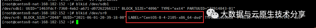 可以查看sdb1分区的UUID和label(详细信息) ,发现sdb1没有设置label,但是可以查看/dev/sr0的lable(/dev/sr0是光驱的设备名)