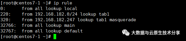 # 通过路由表 tab1 路由来自源地址为192.168.182.0/24的数据包,优先级220