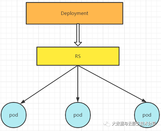 先看一下Deployment、RS、Pod它们三者之间的关系: