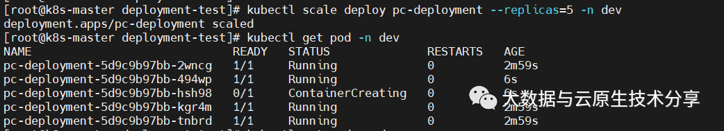 $ kubectl scale deploy pc-deployment --replicas=5 -n dev