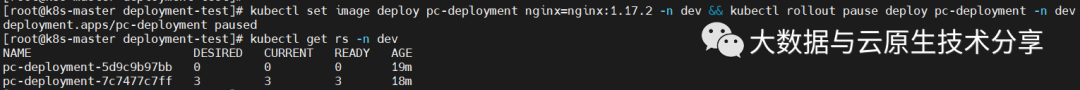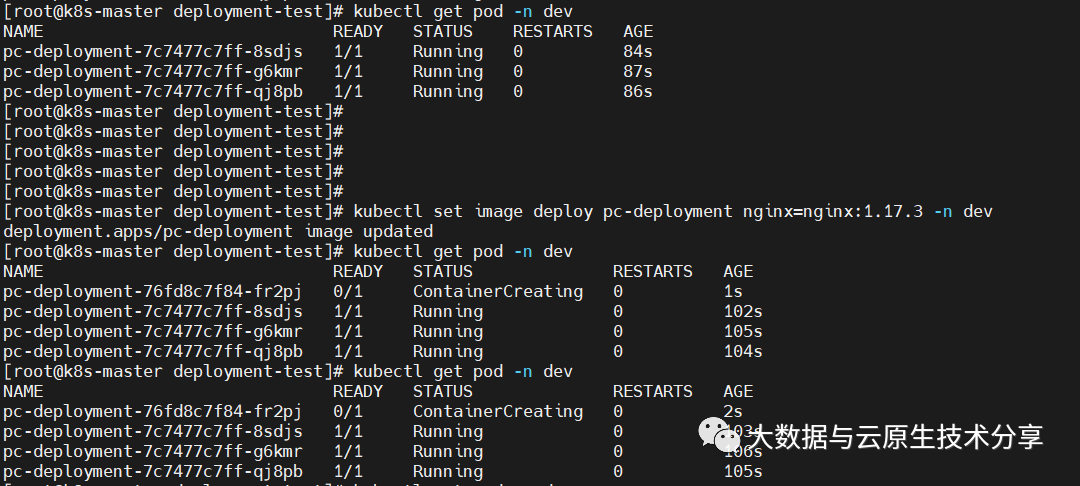$ kubectl set image deploy pc-deployment nginx=nginx:1.17.2 -n dev