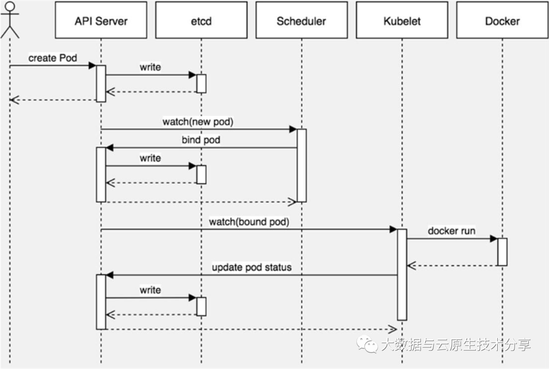 Pod已经被创建,但还没有完成调度,或者说有一个或多个镜像正处于从远程仓库下载的过程。处在这个阶段的Pod可能正在写数据到etcd中、调度、pull镜像或启动容器。