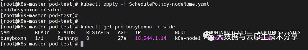 例如:下面示例会绕过调度系统,直接分配到k8s-node1节点。