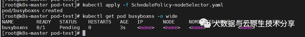 $ kubectl apply -f SchedulePolicy-nodeSelector.yaml
