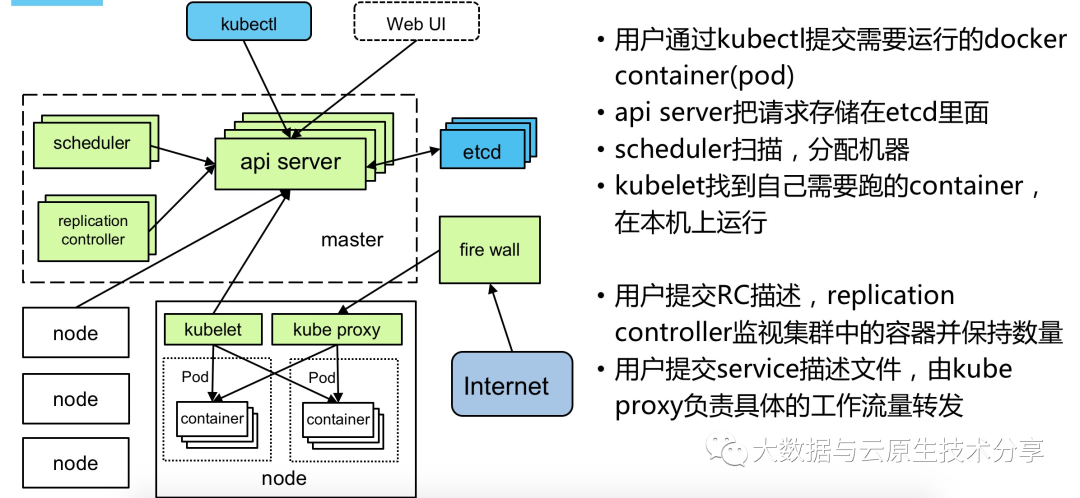 master节点:集群控制节点,来负责整个集群的管理和控制,基本上k8s的所有控制命令都是发给它。我们后面执行的命令基本都是在master节点上运行的。通常它会占据一个独立的x86服务器(或一个虚拟机)。