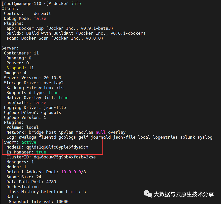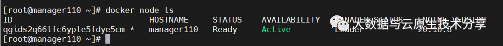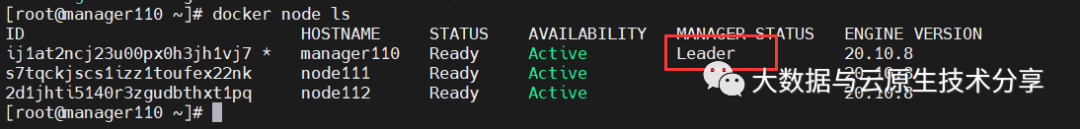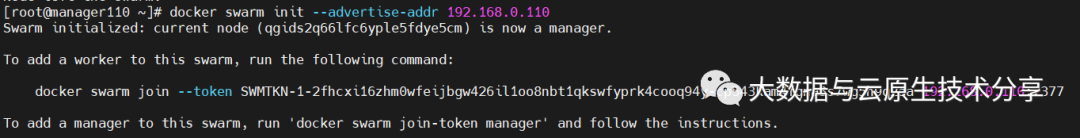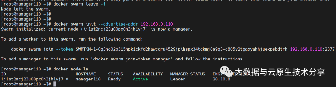 IP:192.168.0.110 主机名:manager110 担任角色:swarm manager