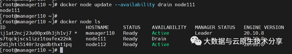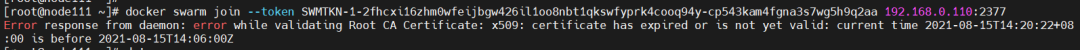 IP:192.168.0.111 主机名:node111 担任角色:swarm node