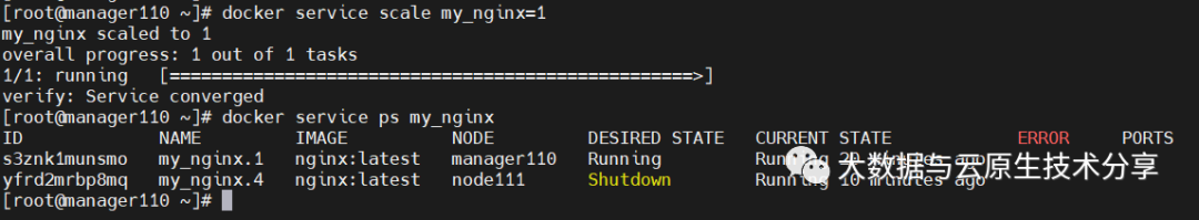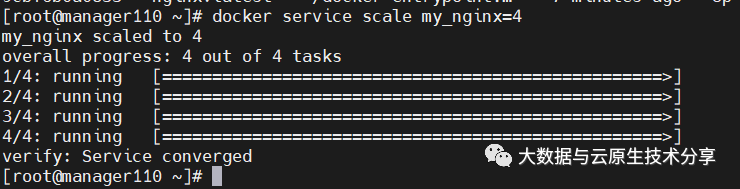 Swarm Cluster不光只是提供了优秀的高可用性,同时也提供了节点弹性扩展或缩减的功能。当容器组想动态扩展时,只需通过scale参数即可复制出新的副本出来。