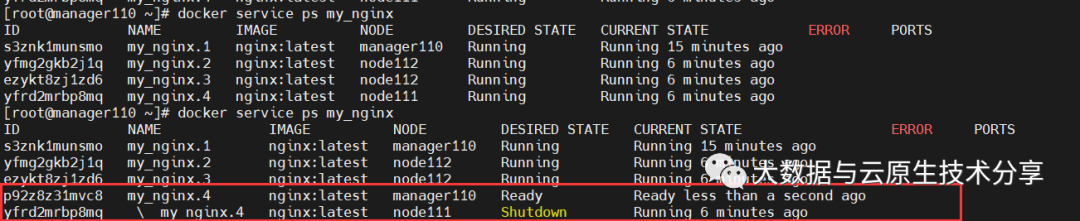 从上图看调度到manager110和node112节点上