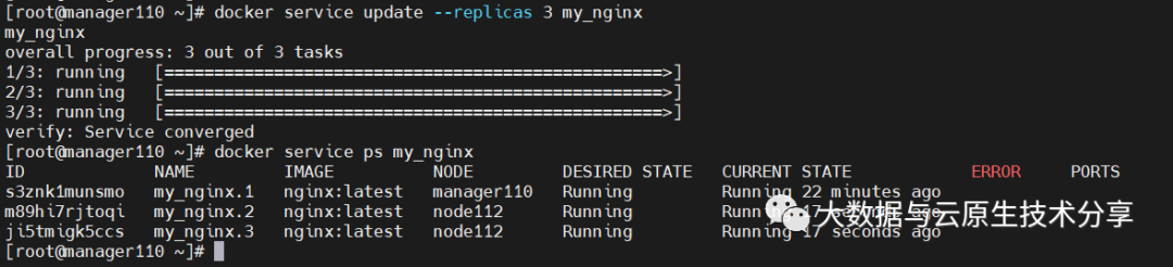 将一系列复制任务分发至各节点当中,具体取决于您所需要的设置状态,例如“--replicas 3”。