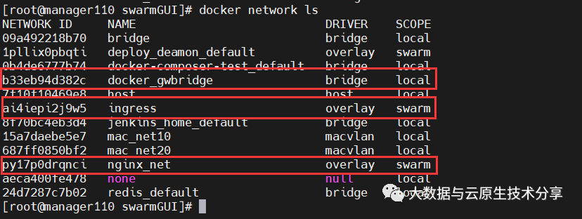 在初始化或刚加入Swarm集群时,会创建一个Ingress和 docker-gwbridge网络