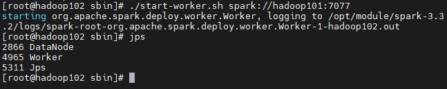cd opt/module/spark-3.3.2/sbin#启动主节点--hadoop101上执行start-master.sh#启动从节点-all--hadoop101上执行start-slaves.sh重定向到了 start-workers.sh#启动从节点-single---分别在对应节点上执行start-slave.sh重定向到了 start-worker.sh启动命令格式:sh start-slave.sh master-url:7077备注:此例master 主机名为 hadoop101【示例】:#在hadoop102、hadoop103上面分别执行下面命令启动该节点上work./start-worker.sh spark://hadoop101:7077#启动shellspark-shell