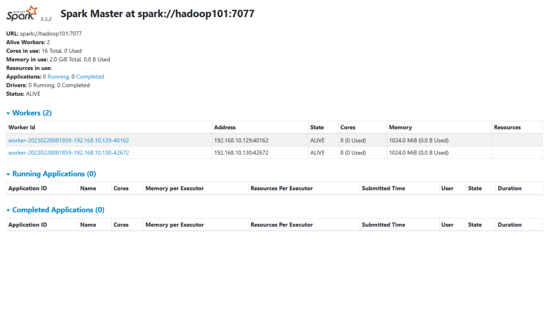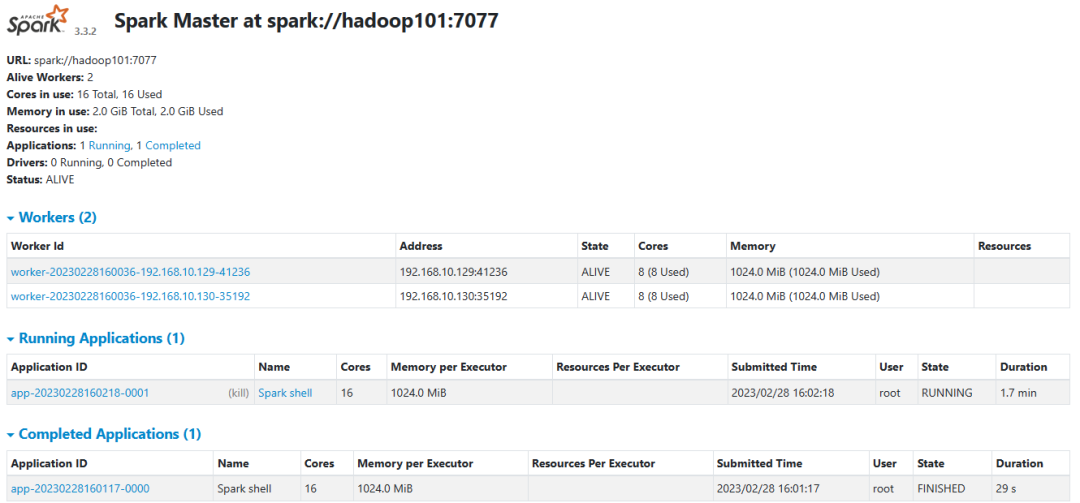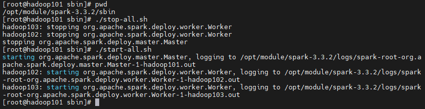 cd opt/module/spark-3.3.2/sbin/./stop-all.shstop-history-server.sh./start-all.shstart-history-server.sh