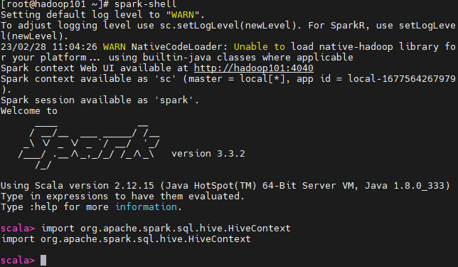 返回上面信息,即代表Spark版本包含Hive支持,能够访问Hive