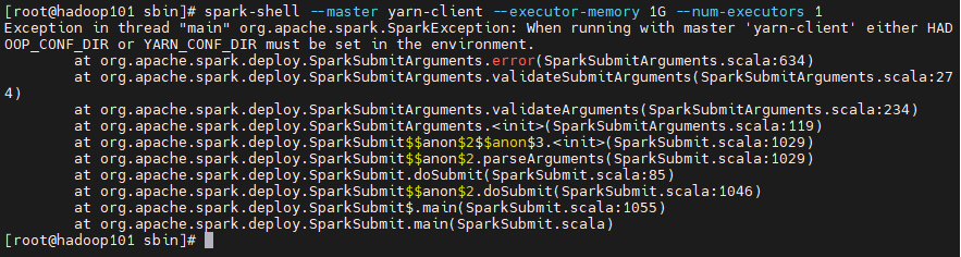 spark-shell --master yarn-client --executor-memory 1G --num-executors 1