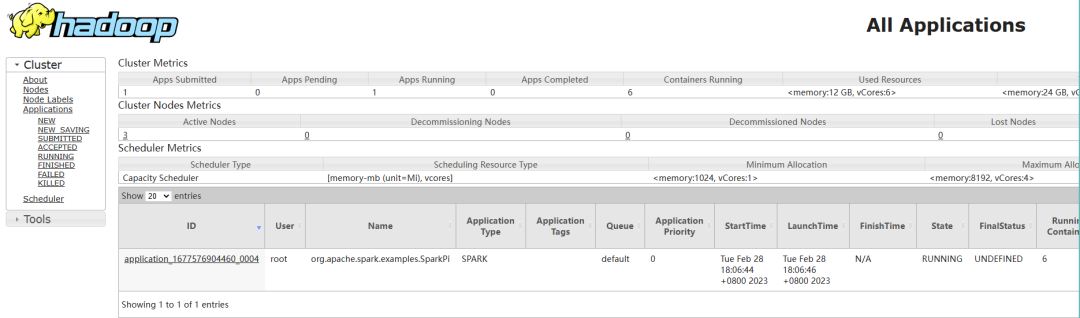 #登录yarn webui上面看是否提交