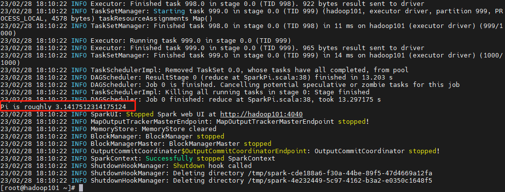 spark-submit --class org.apache.spark.examples.SparkPi \--master yarn \--deploy-mode client \--driver-memory 1g \--executor-memory 1g \--executor-cores 1 \--num-executors 5 \--queue default \/opt/module/spark-3.3.2/examples/jars/spark-examples_2.12-3.3.2.jar \1000