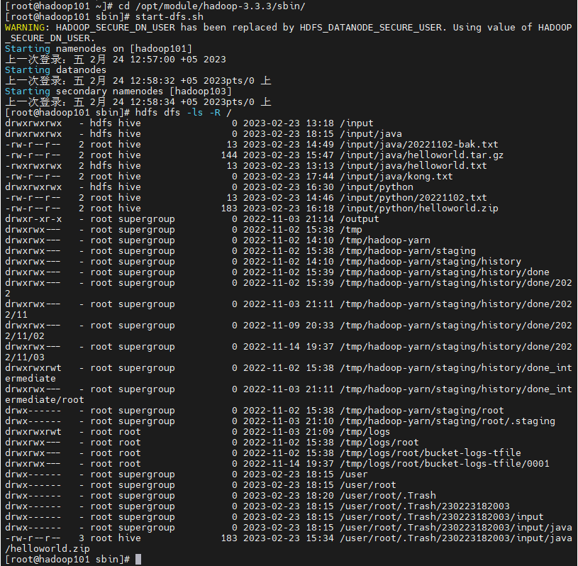 cd opt/module/hadoop-3.3.3/sbin/./start-all.sh