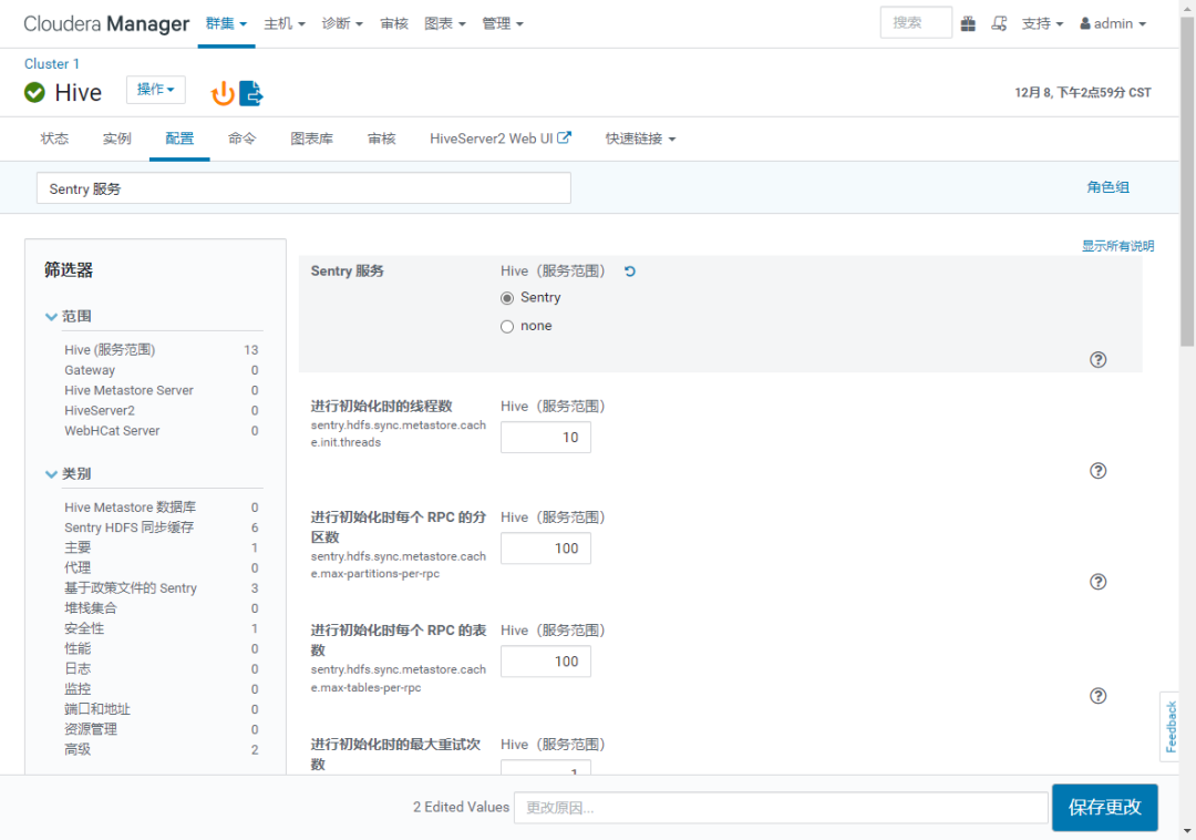 3.0.2、Hive启用Sentry服务