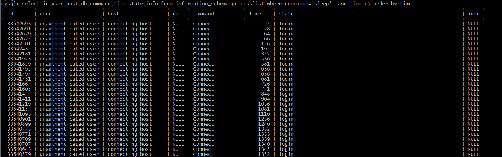 业务反应数据库很卡,登录数据库查看发现很多线程是login 状态