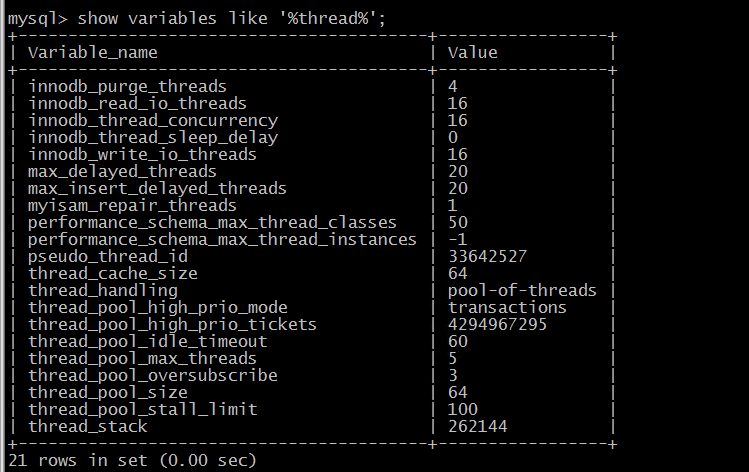 由以上信息可以知道当thread_pool_max_threads被设置为5后,就不能继续创建线程给新进入的连接使用了,因此才会被阻塞,处于login的状态。