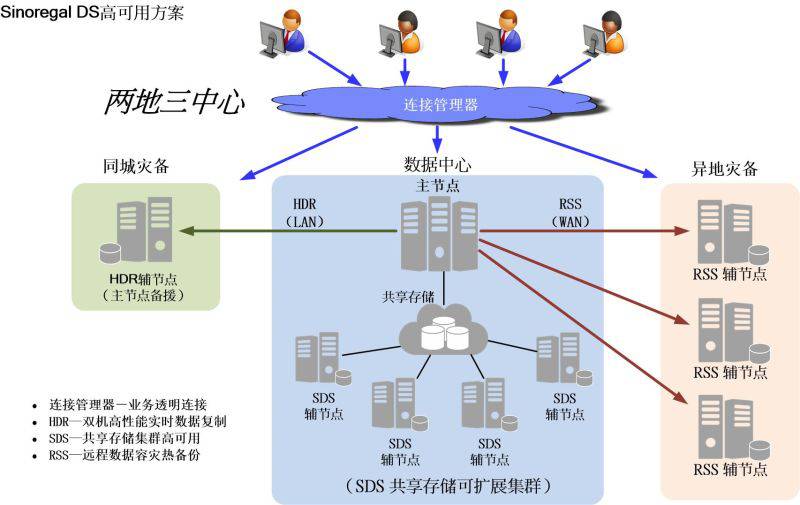 星瑞格Sinoregal DS 可按需服务, 打造灵活的高可用性架构。它首先由备份和恢复这些基本的实用功能开始,具有非常深入的细粒度功能实现和可扩展性,能够用于您所有的数据,甚至最小的数据子集。此外,它还增加了一些额外的功能,通过高可用性数据复制(HDR)功能创建热备份,从而创建并维护生产环境的副本,或者创建备用环境的精确副本,对其进行实时维护,当主系统出现故障无法正常工作时能够立即对其进行接管。随着产品功能的增多,可用性功能选项也随之增多,通过远程备用服务器(RSS)功能,您可以获得任意数量的持续维护的副本,无论是本地的还是远程的,都可以实现全球可用性。最后,通过共享磁盘备用服务器(SDS)功能,您可以在众多服务器之间共享位于同一网络中的数据副本,对您在存储领域的投资进行扩展,使更多的Sinoregal DS 数据库服务器可以共享访问磁盘上同样的数据副本。这些可用性解决方案甚至还能为您实现更高的价值,让您在所有查询之间对工作负载进行均衡,而不会干扰或影响其可用性结构。