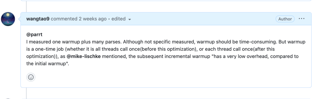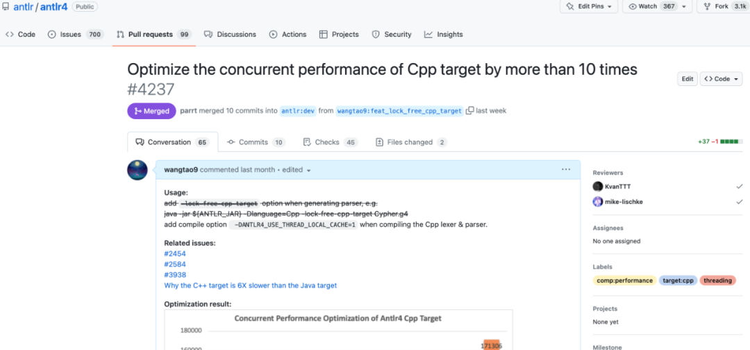 提案的互动过程曲折也充满乐趣。当涉及到多线程代码的修改时,官方开发团队会格外谨慎,因为这涉及到系统的稳定性和性能。他们会进行仔细的测试和评估,确保修改不会引入新的问题或降低系统的性能。为此社区引入了多达7名评审专家(一般提案的评审人多为1~2人),长达60多次的反复讨论不仅是评审专家理解提案的过程,也让我们了解了很多Antlr4代码背后深层的设计理念,可以更好地利用它来构建高性能、可维护的语法分析器。