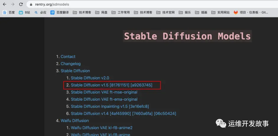 访问Stable Diffusion Models网站来进行模型的下载,以Stable Diffusion v1.5为例