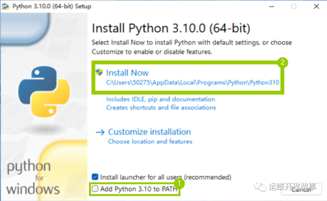 请确保安装Python时 勾选“ Add Python 3.10 to PATH”选项。
