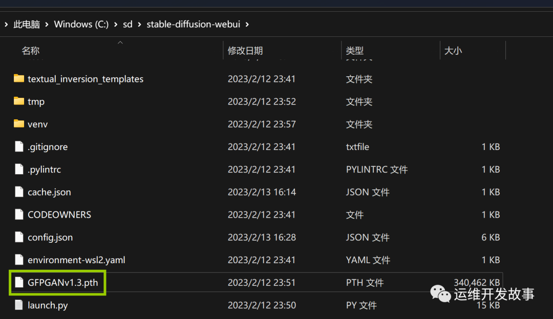 完成下载后直接将GFPGANv1.3.pth拖拽至stable-diffusion-webui文件夹中即可,如:“C:\sd\stable-diffusion-webui”。
