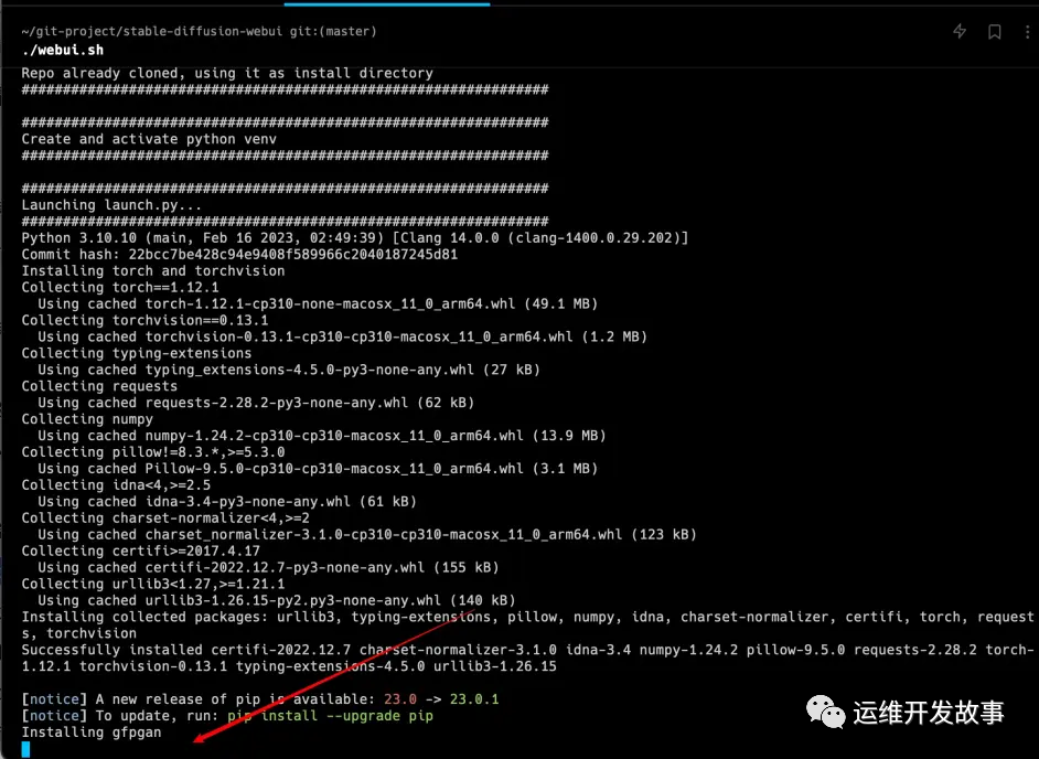 在终端窗口先执行:cd stable-diffusion-webui。目的是进入该文件夹执行后续命令