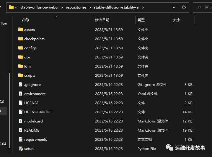 备注:如果是zip包解压,stable-diffusion-stability-ai文件夹下直接是stablediffusion的内容,不要多加stablediffusion文件夹,如下图:
