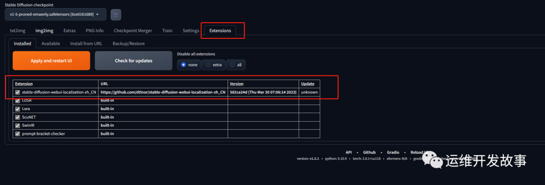 2.重新执行webui.sh访问http://127.0.0.1:7860,在出来的列表中如果可以找到 zh_CN Localization,就说明已经加载成功: