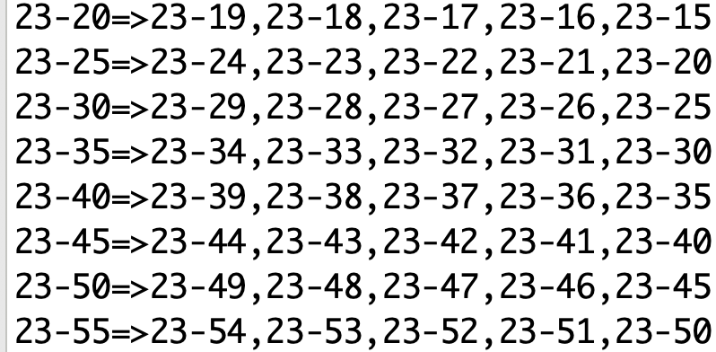 这里,我们需要对落地到HDFS上的文件进行预处理,处理的逻辑是这样的。比如,现在是2022-02-26 14:00,那么我们需要将当天的13:55,13:56,13:57,13:58,13:59这最近5分钟的数据处理到一起,并加载到Hive的最近5分钟的一个分区里面去。那么,我们需要生成这样一个逻辑策略集合,用HH-mm作为key,与之最近的5个文件作为value,进行数据预处理合并。具体实现代码步骤如下: