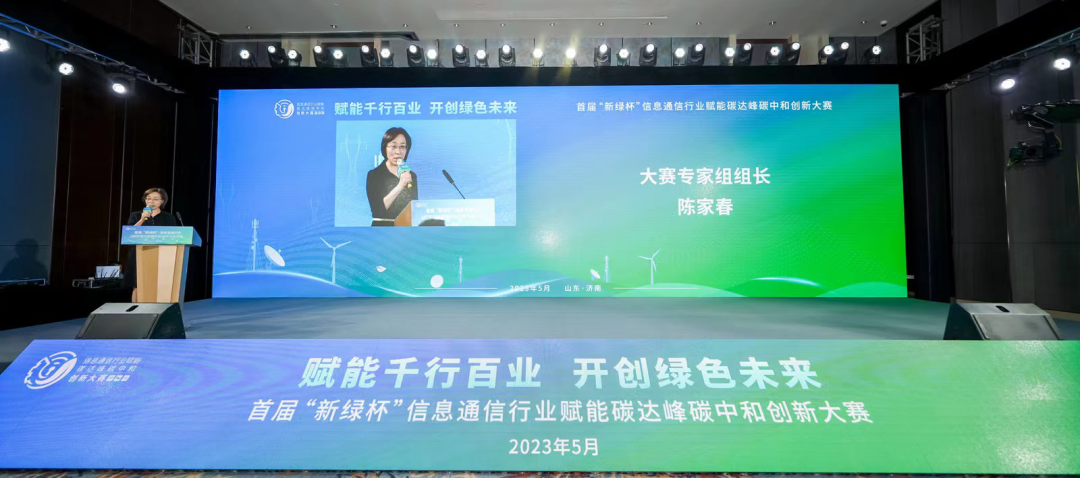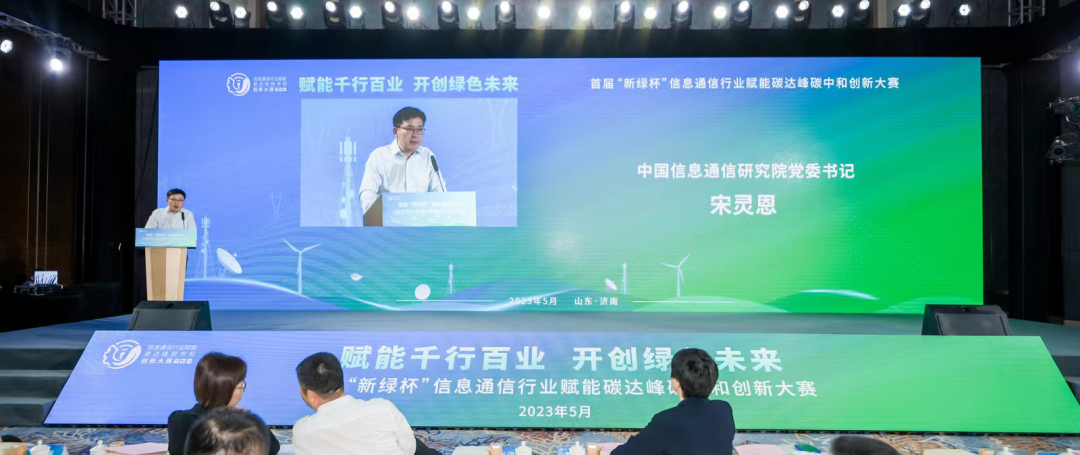 2023年5月21-23日,首届“新绿杯”信息通信行业赋能碳达峰碳中和创新大赛总决赛在山东济南举办。本次大赛总决赛由中国信息通信研究院(以下简称“中国信通院”)联合山东省通信管理局主办,以“赋能千行百业、开创绿色未来”为主题,旨在贯彻落实党中央、国务院碳达峰碳中和工作部署及《信息通信行业绿色低碳发展行动计划(2022-2025年)》的有关工作安排,遴选并推广一批行业绿色低碳技术创新和应用项目、数字化赋能节能降碳的典型应用场景和先进发展模式,树立行业绿色发展标杆,全面推动信息通信行业绿色低碳高质量发展。