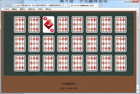 扑克翻牌游戏就是桌面24张牌,玩家翻到两张相同扑克牌则消去,如果2分钟仍然没有翻到两张相同扑克牌则游戏失败。