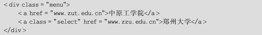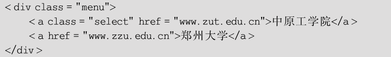 使用jQuery实现,当单击“中原工学院”的时候自动添加class="select",代码自动变成: